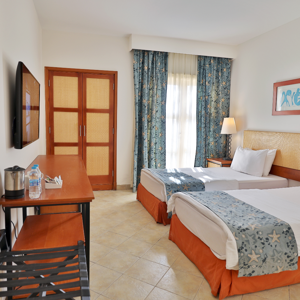 Enjoy your stay in a king or twin beds room, facing the red mountains of Aqaba. After a long day by the shore of Red Sea, relax and make yourself a cup of tea/coffee. This room also features a balcony, free high-speed Wi-Fi connection and minibar.